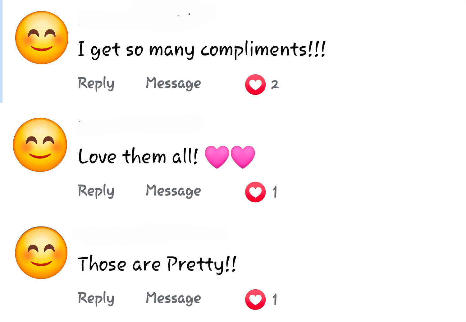 Here are some customer comments on our items 💕Â